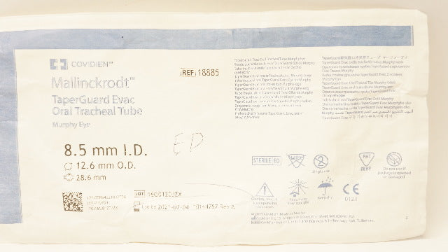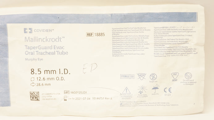 - Covidien 18885 Shiley TaperGuard Evac Oral Tracheal Tube 8.5ID x 12.6mm OD (x)