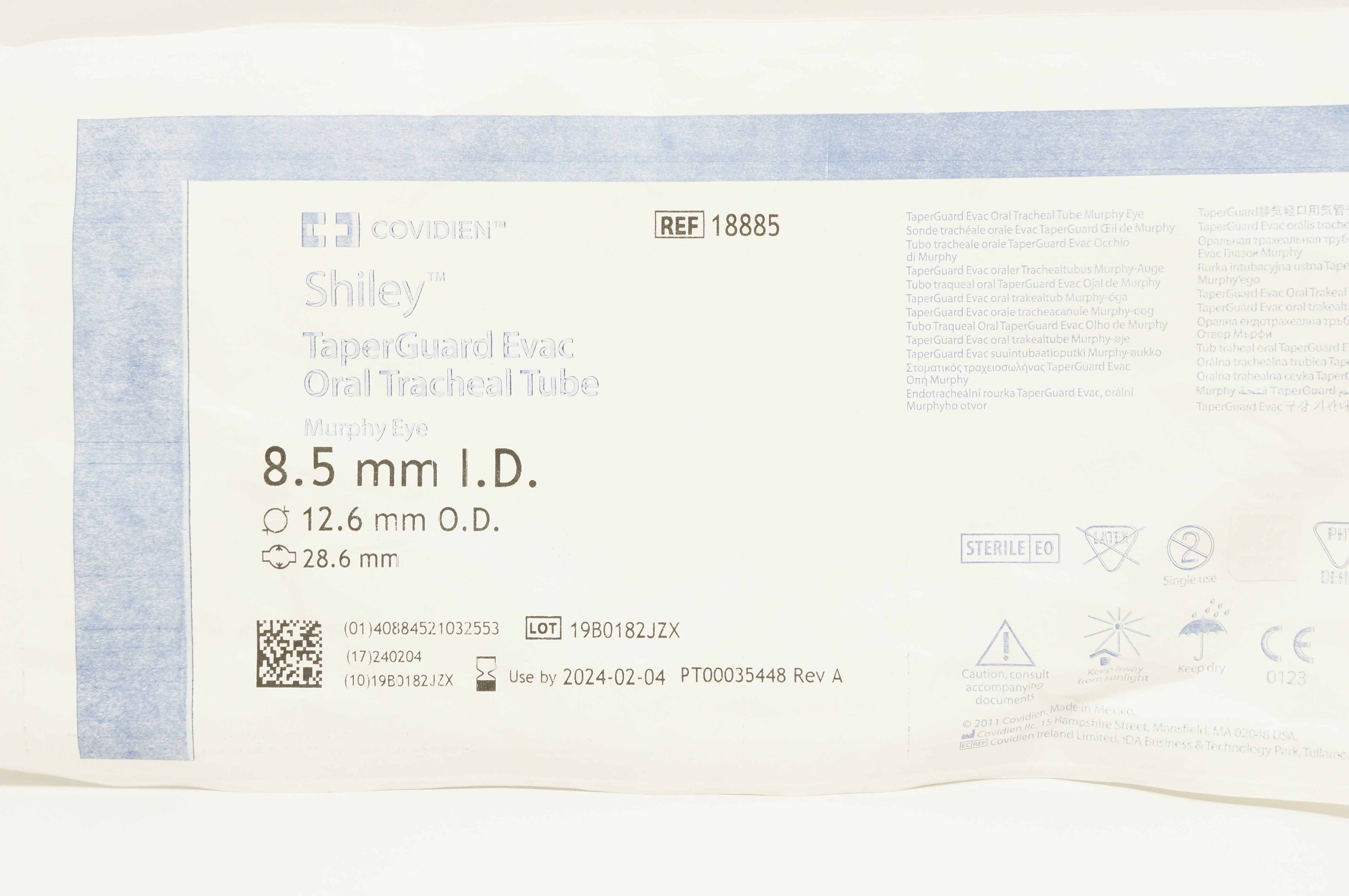- Covidien 18885 Shiley TaperGuard Evac Oral Tracheal Tube 8.5mm I.D.