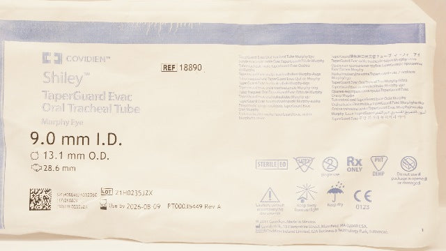 Covidien 18890 Shiley TaperGuard Evac Oral Tracheal Tube 9.0mmID x 13.1mmOD x 28.6mm