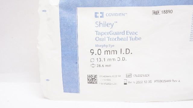 - Covidien 18890 Shiley TaperGuard Oral Tracheal Tube 9.0IDx13.1OD (x)