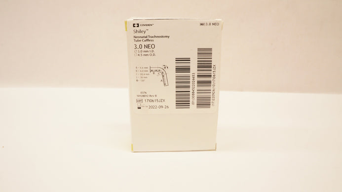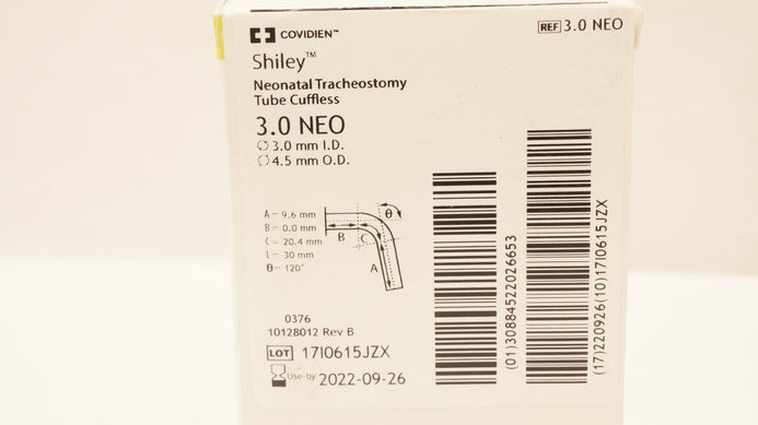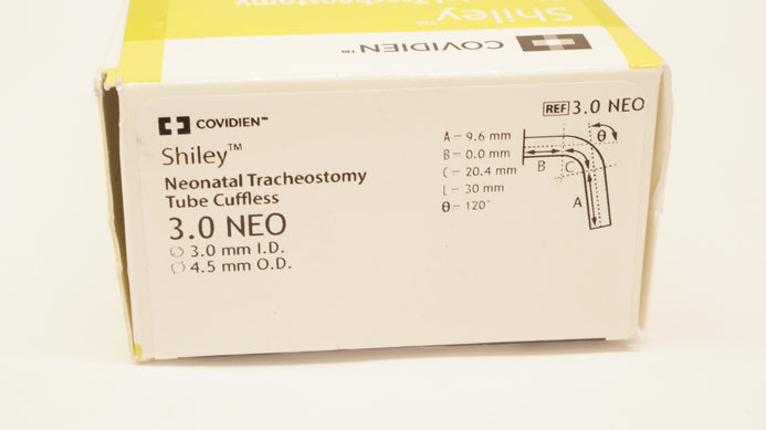 - Covidien 3.0NEO Shiley Neonatal Tracheostomy Tube Cuffless 3.0 ID x 4.5mm OD(x)