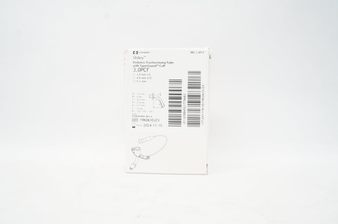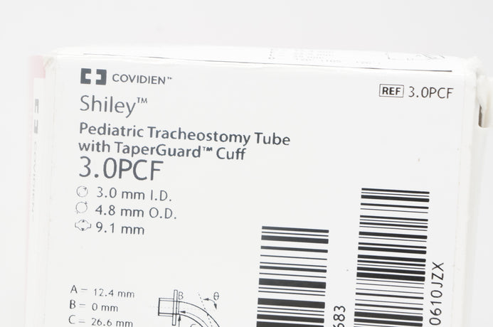- Covidien 3.0PCF Shiley Pediatric Tracheostomy Tube 3.0mm ID x 4.8mm OD x 9.1mm