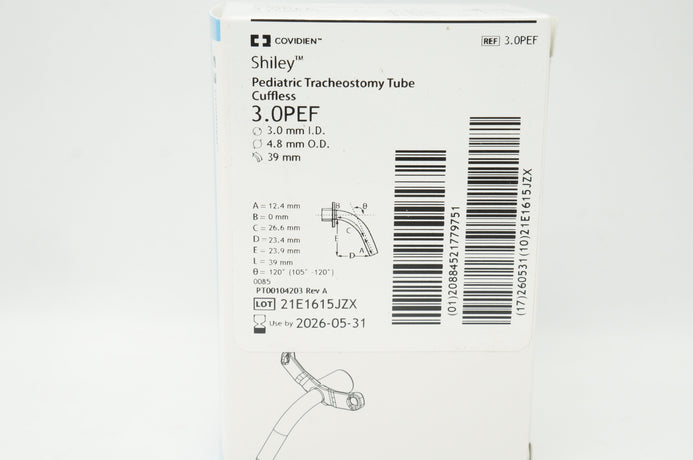 Covidien 3.0PEF Shiley Pediatric Tracheostomy Tube 3.0 x 4.8 x 39mm
