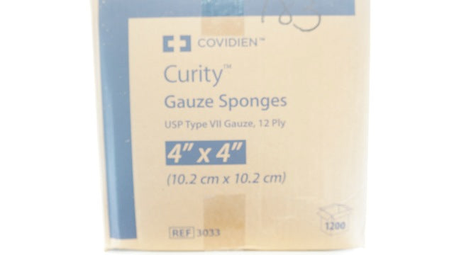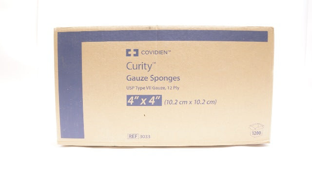 - Covidien 3033 Curity VII Gauze Sponges USP Type 12-Ply 4 x 4inch - Box of 1200