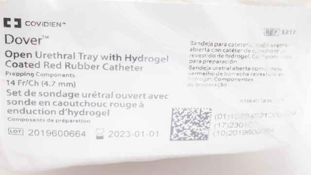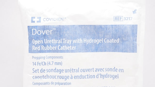- Covidien 3217 Dover Open Urethral Tray with Hydrogel Coated Cath. 14Fr/Ch (x)
