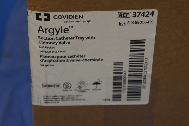 Covidien 37424 Argyle Suction Cath Tray with Chimney Valve 14Fr ~ Box of 50