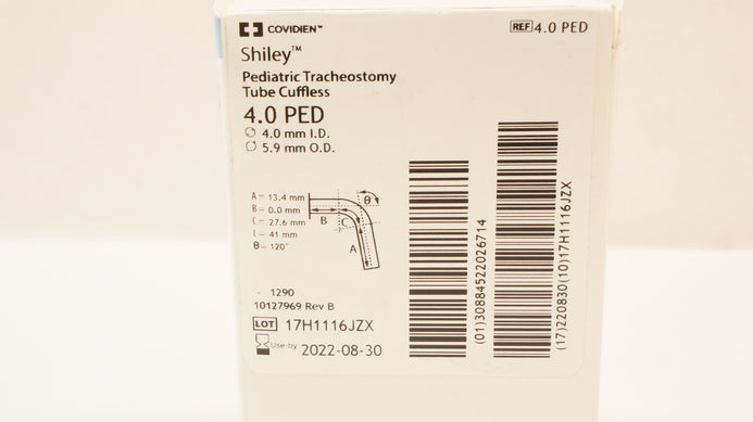 Covidien 4.0PED Shiley Pediatric Tracheostomy Tube Cuffless 4.0mm ID x 5.9mm OD