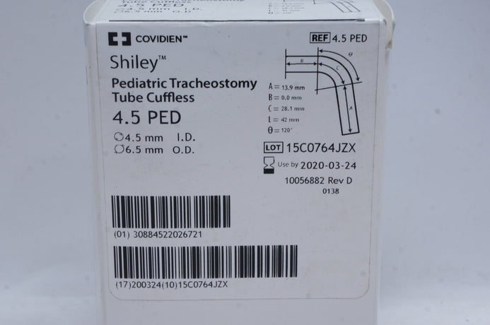 Covidien 4.5PED Shiley Pediatric Tracheostomy Tube Cuffless, 4.5mm ID, 6.5mm (x)