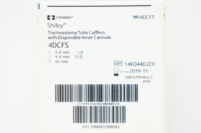 Covidien 4DCFS Shiley Tracheostomy Tube Cuffless with Disposable Inner Cannula 5.0mm I.D. x 9.4mm O.D. x 62mm
