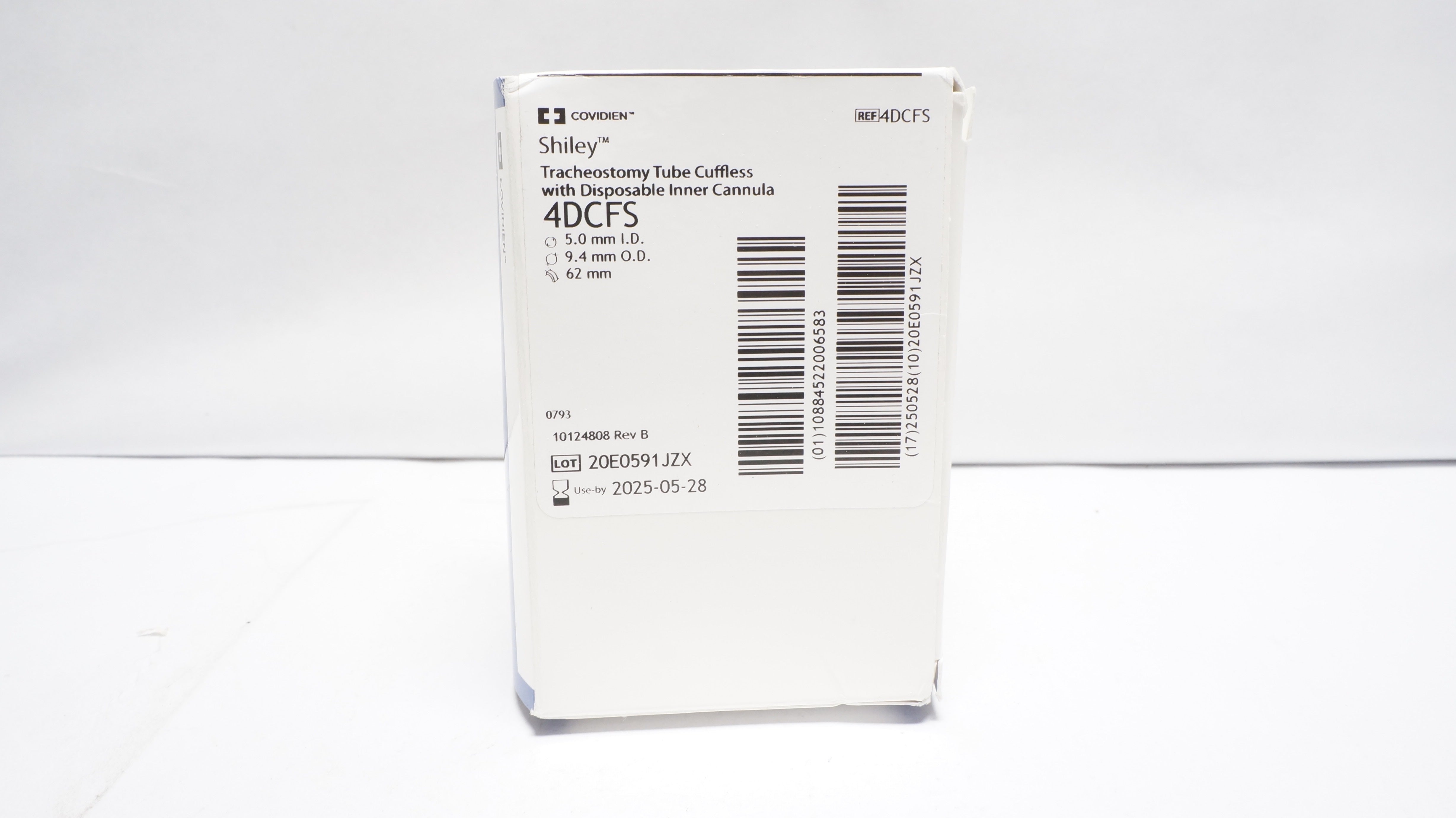 - Covidien 4DCFS Shiley Tracheostomy Tube Cuffless 5.0 I.D. x 9.4 O.D. x 62mm (x)