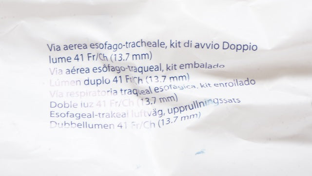 Covidien 5-18441 Shiley Esophageal Tracheal Airway Rollup Kit 2 Lumen 41Fr/Ch