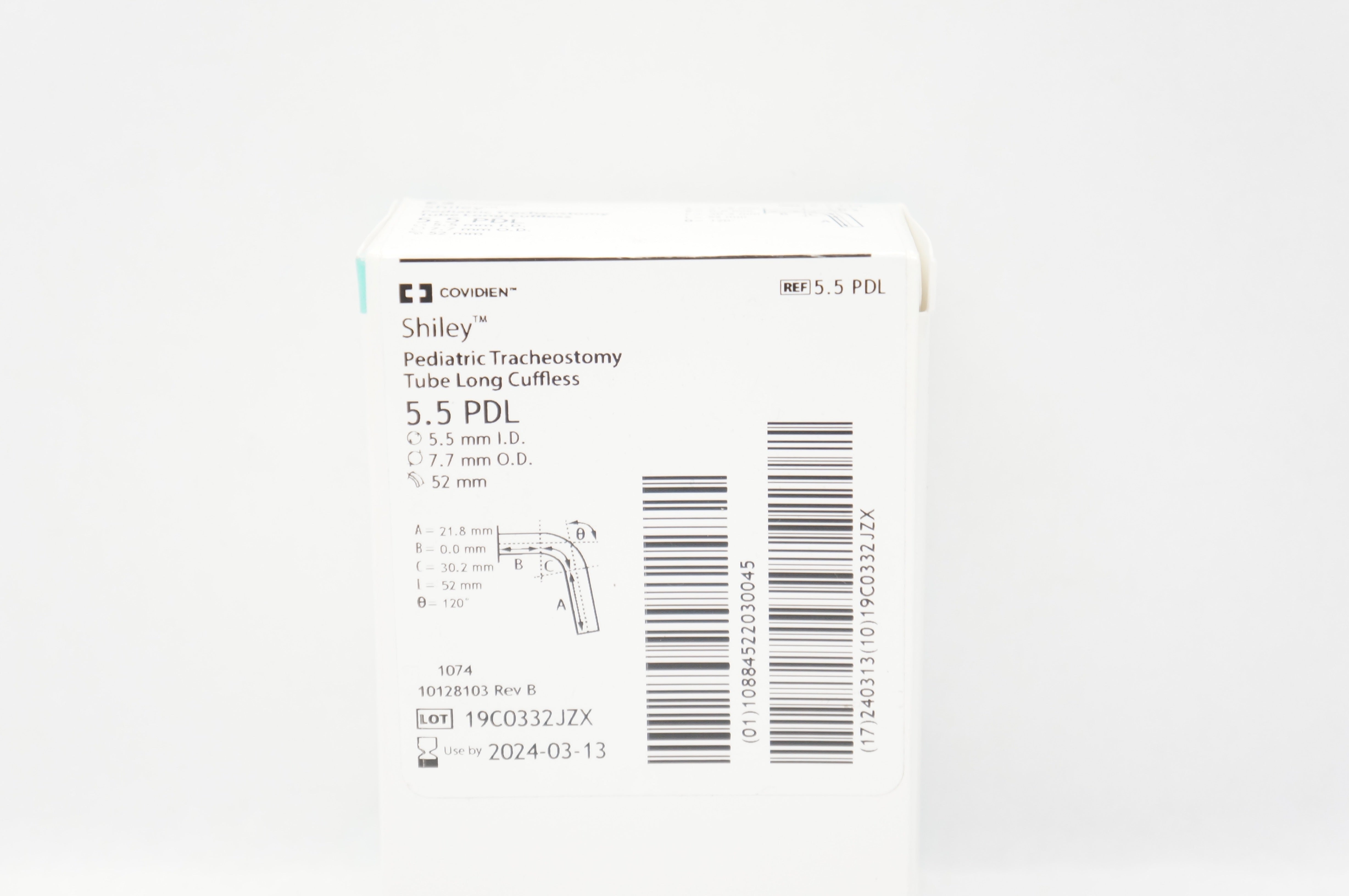 Covidien 5.5PDL Shiley Pediatric Tracheostomy Tube Long Cuffless 5.5mm O.D, 7.7mm O.D