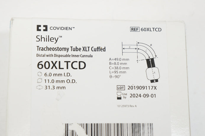 Covidien 60XLTCD Shiley Tracheostomy Tube XLT Cuffed 6mm ID