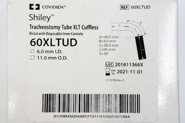- Covidien 60XLTUD Tracheostomy Tube XLT Cuffless 6.0mm I.D., 11.0mm O.D.