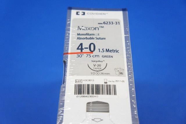 Covidien 6233-31 Maxon, V-20, Monofilament Absorbable Stre 30", Size 4-0