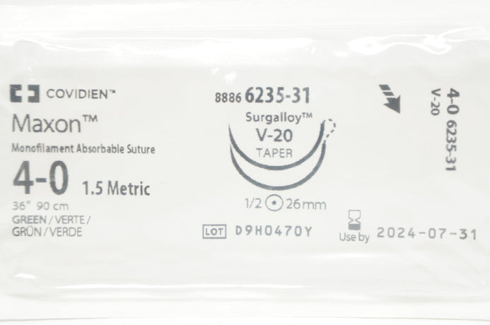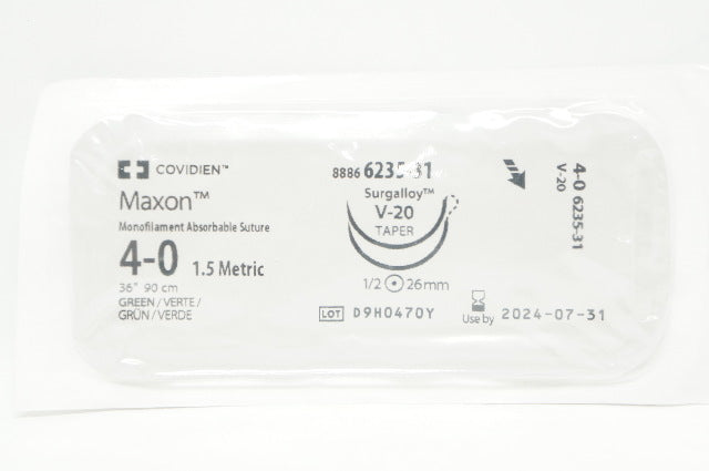 Covidien 6235-31 4-0 Maxon Monofilament Absorbable Suture Surgalloy V-20 Taper