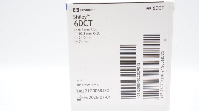 - Covidien 6DCT Shiley Tracheostomy Tube Cuffed 6.4mm ID x 10.8mm OD x 24.0 x 74mm