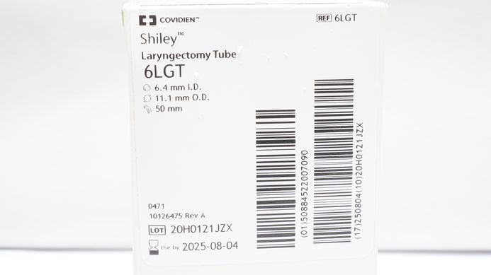 - Covidien 6LGT Shiley Laryngectomy Tube 6.4mm ID x 11.1mm O.D., 50mm (x)