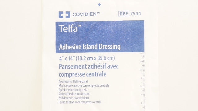 - Covidien 7544 Telfa Adhesive Island Dressing 4 inch x 14 inch