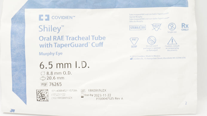 - Covidien 76265 Shiley Oral RAE Tracheal Tube with Cuff 6.5mm ID x 8.8mm OD (x)