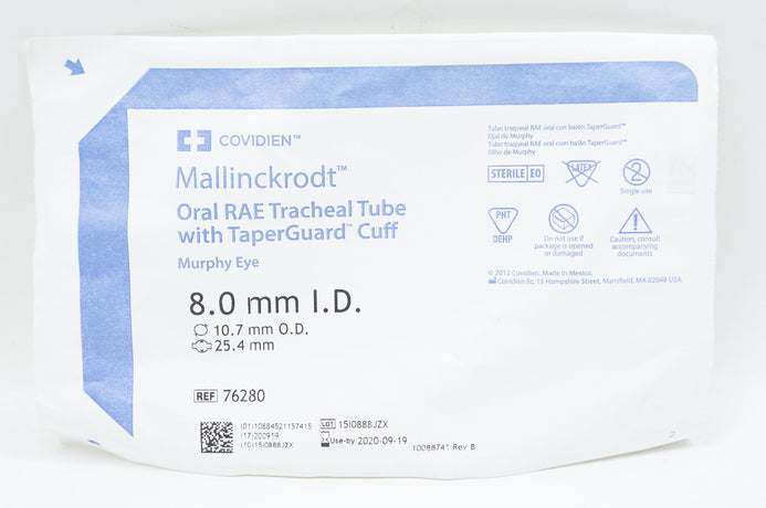 Covidien 76280 Mallinckrodt Oral RAE Tracheal Tube 8.0mm ID, 10.7mm OD
