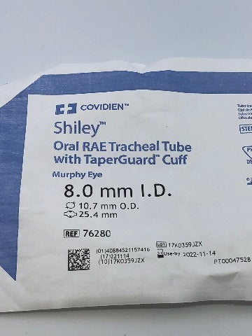 Covidien 76280 Shiley Oral RAE Trracheal Tube with TaperGuard Cuff 8.0mm ID