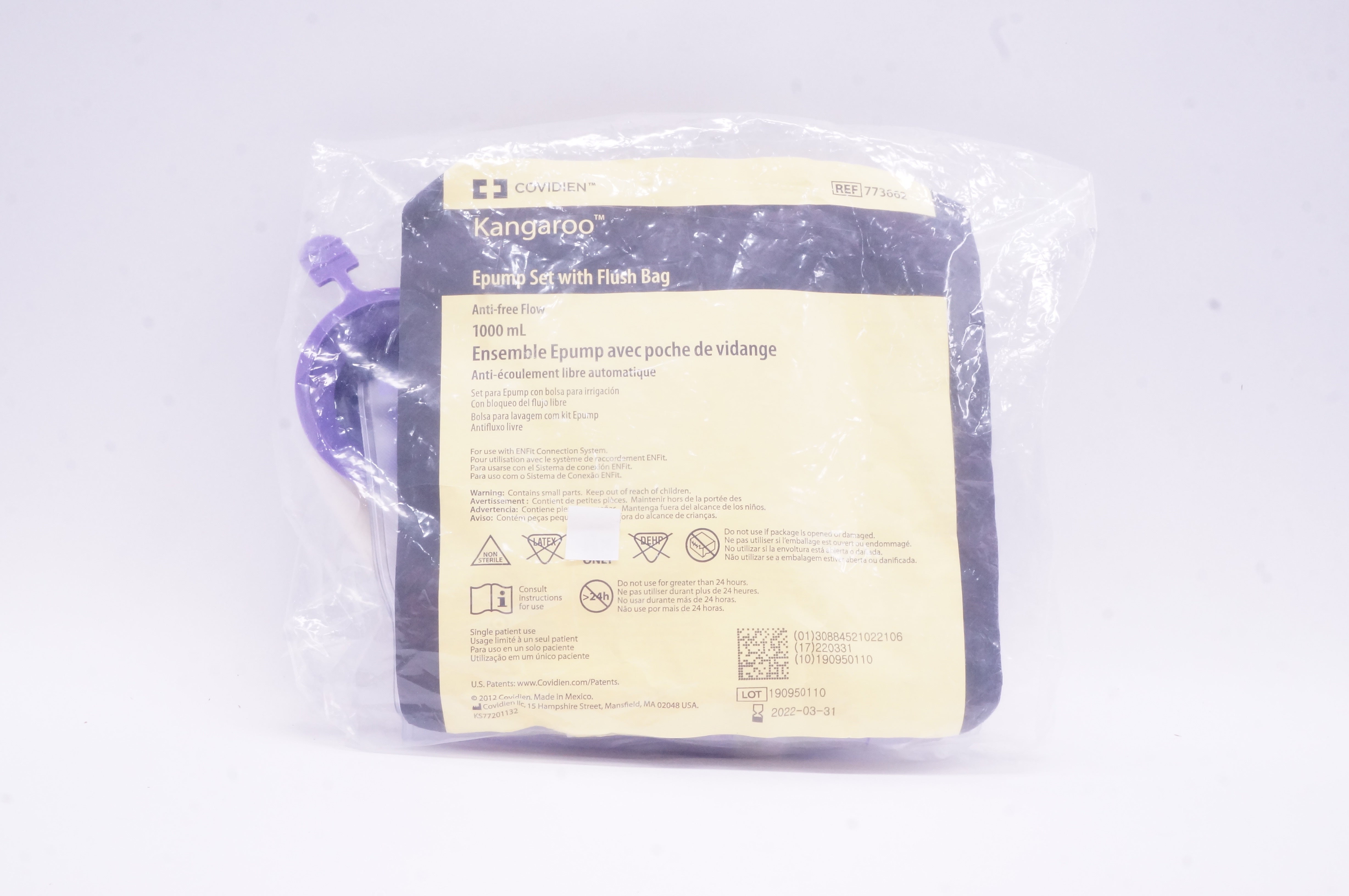 - Covidien 773662 Kangaroo Epump Set with Flash Bag Anti-Free Flow 1000mL (x)