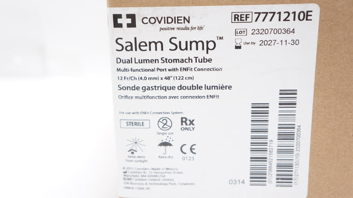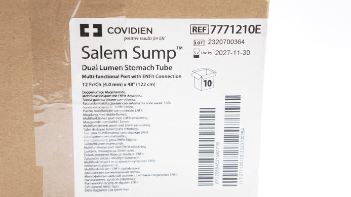 Covidien 7771210E Salem Sump Dual Lumen Stomach Tube 12Fr/Ch x 48inch - Box of 10