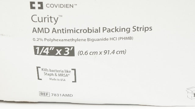 - Covidien 7831AMD Curity Antimicrobial Packing Strips 1/4inch x 3 Ft. - Box of 10