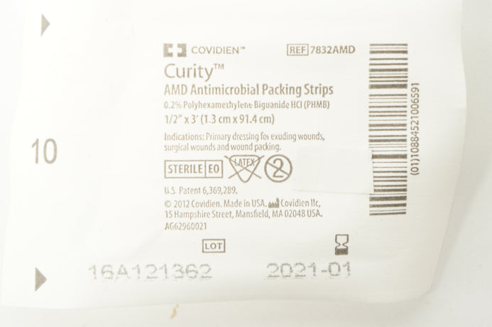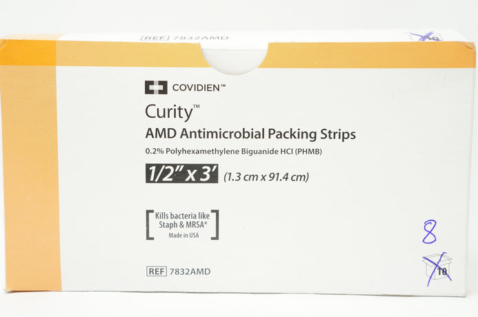 Covidien 7832AMD Curity Antimicrobial Packing Strips 1/2inchx3Ft. (x) - Box of 8