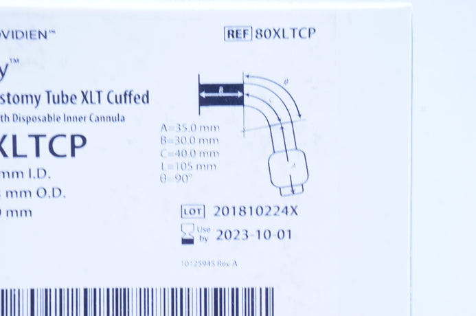 Covidien 80XLTCP Shiley Tracheostomy Tube XLT Cuffed 8.0ID x 13.3OD x 35.0mm (x)