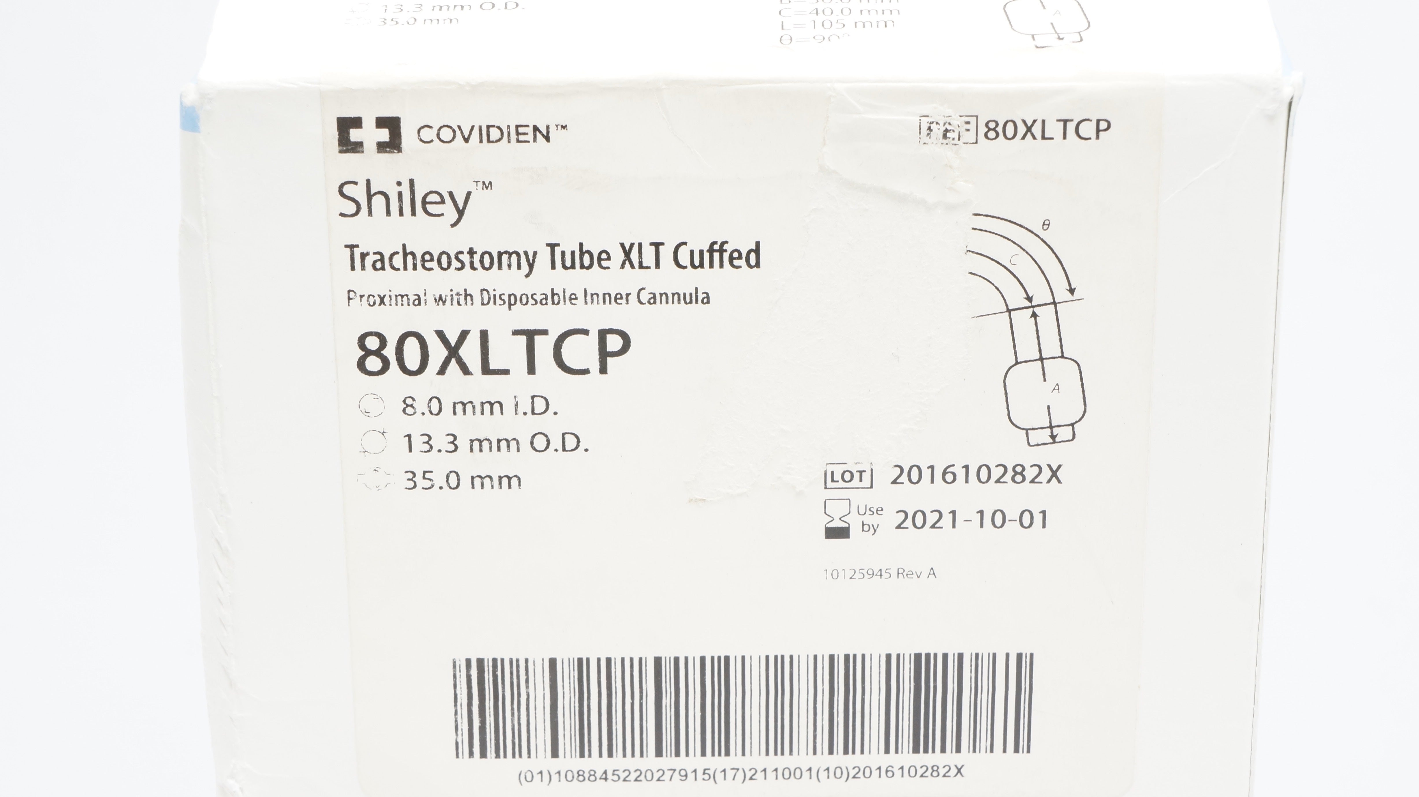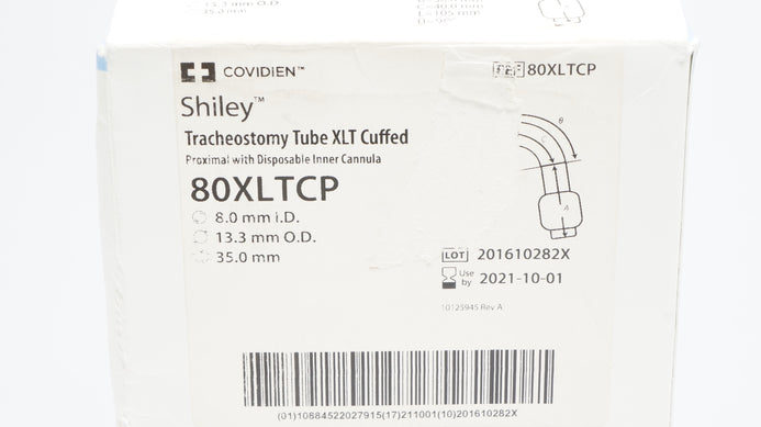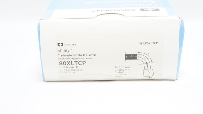- Covidien 80XLTCP Shiley Tracheostomy Tube XLT Cuffed 8.0ID x 13.3OD x 35.0mm (x)