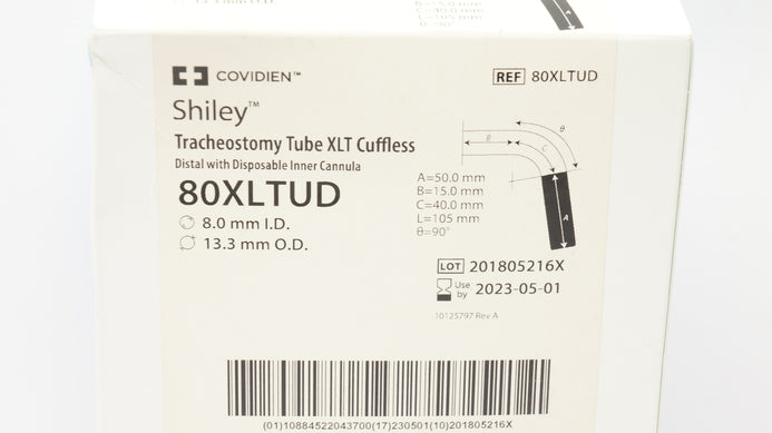 Covidien 80XLTUD Shiley Tracheostomy Tube XLT Cuffless 8.0mm ID 13.3mm OD (x)