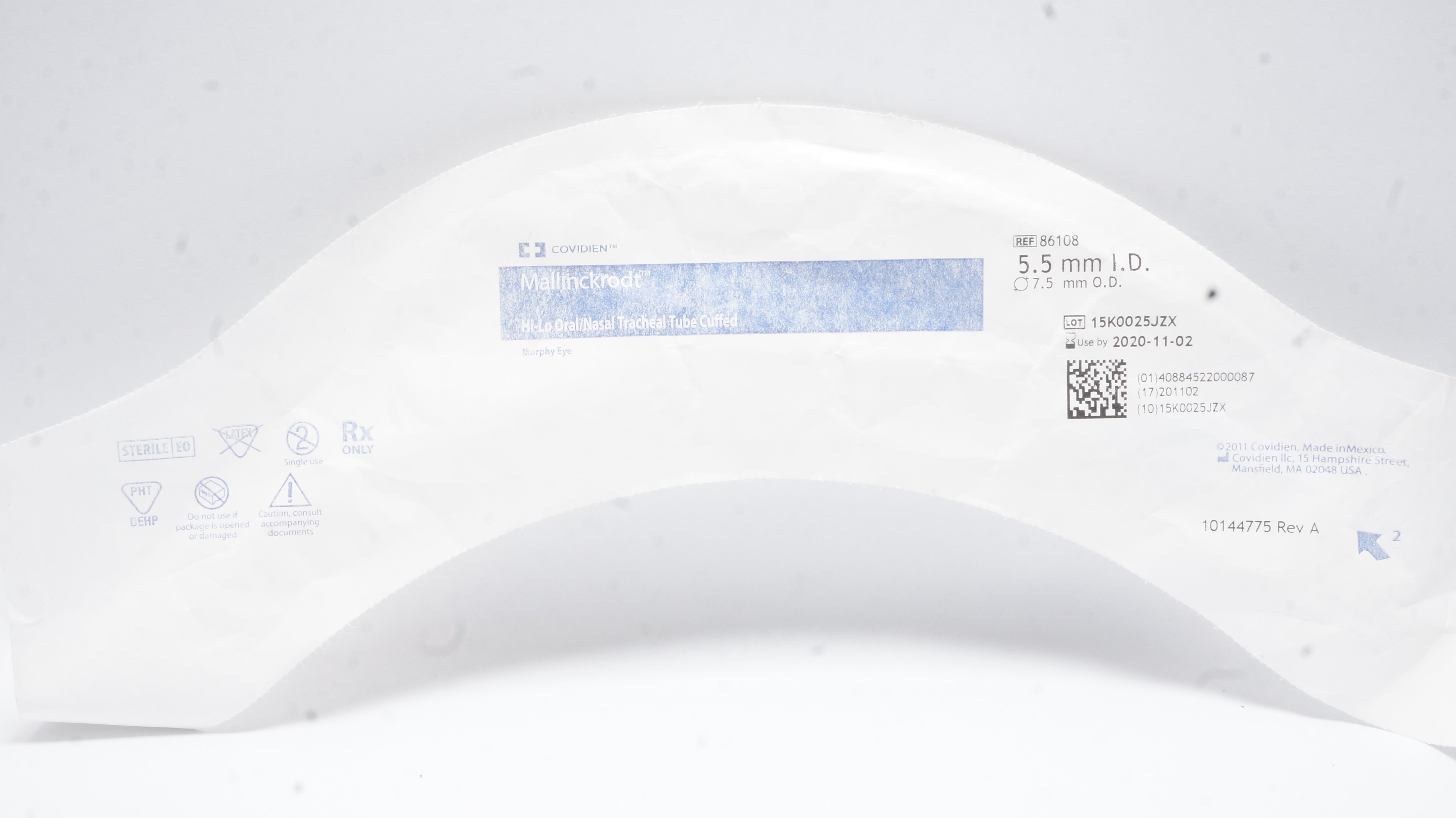 Covidien 86108 Mallinckrodt Hi-Lo Oral/Nazal Tracheal Tube Cuffed 5.5mm ID 7.5mm OD