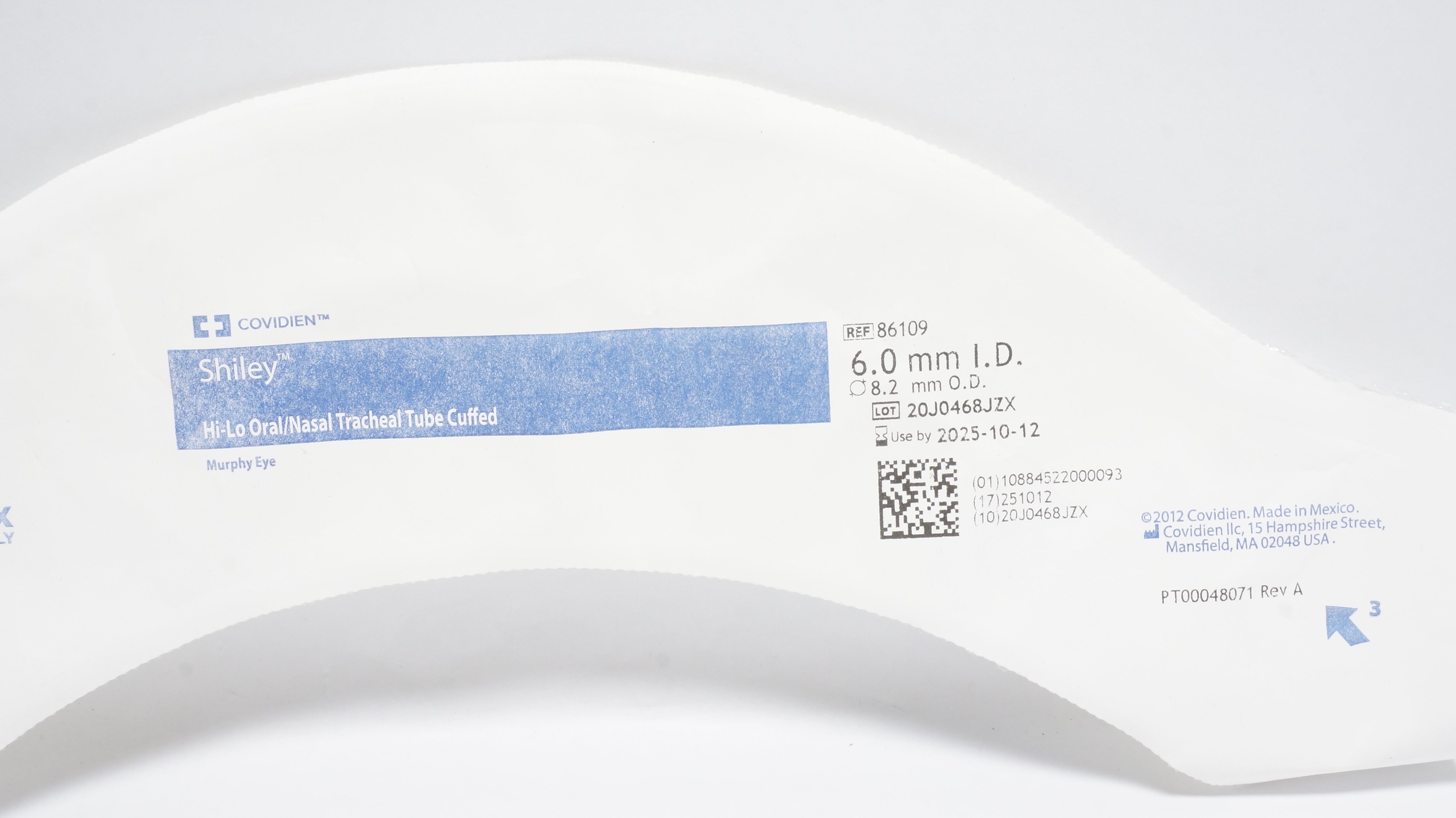 - Covidien 86109 Shiley Hi-Lo Oral/Nasal Tracheal Tube Cuffed 6.0 ID x 8.2mm OD(x)