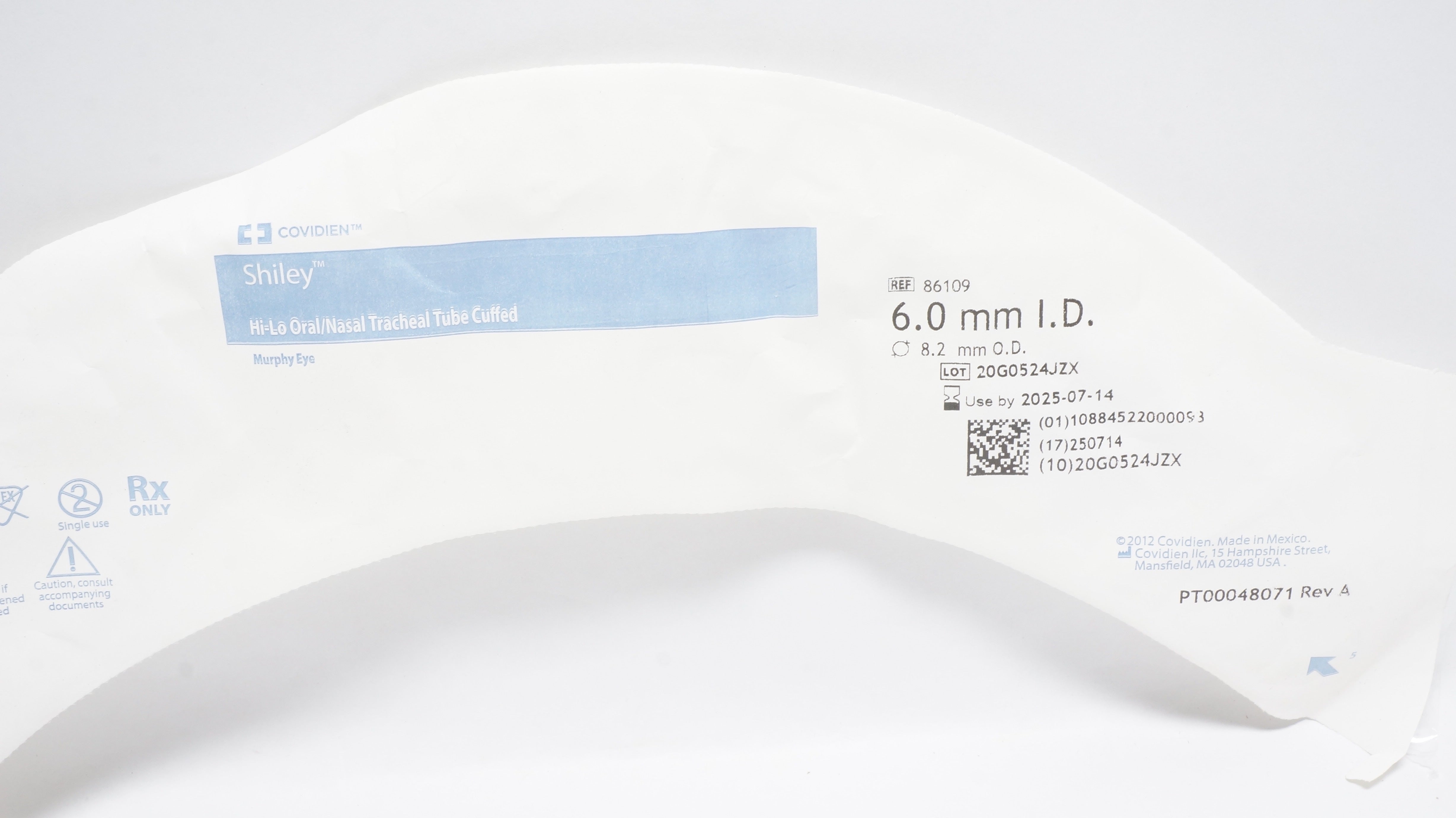 Covidien 86109 Shiley Hi-Lo Oral/Nasal Tracheal Tube Cuffed 6.0 ID x 8.2mm OD(x)