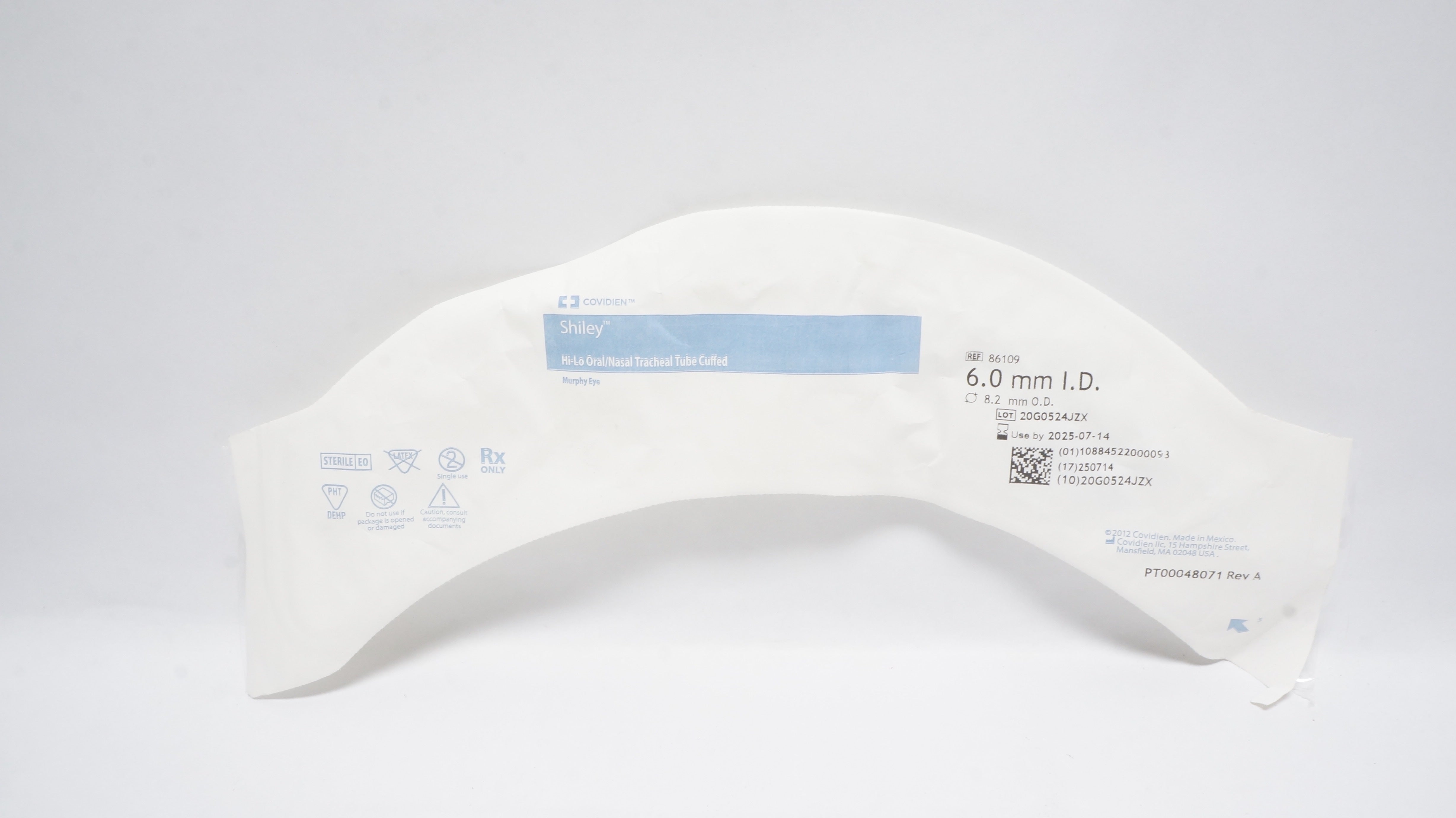 Covidien 86109 Shiley Hi-Lo Oral/Nasal Tracheal Tube Cuffed 6.0mm ID x 8.2mm OD