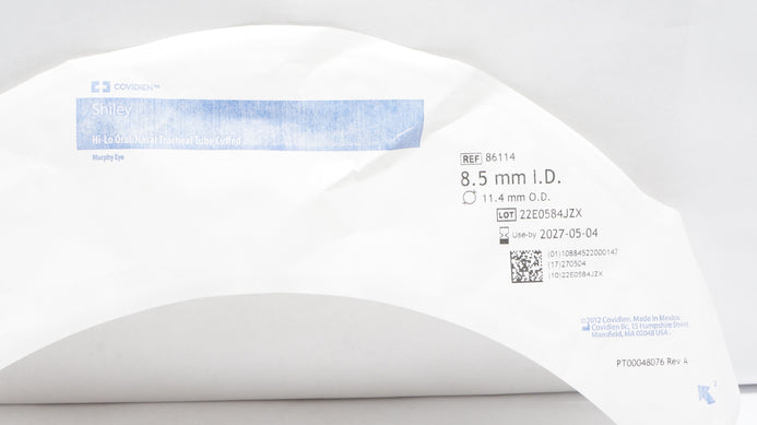 - Covidien 86114 Shiley Hi-Lo Oral/Nasal Tracheal Tube Cuffed 8.5mm ID x 11.4mm OD