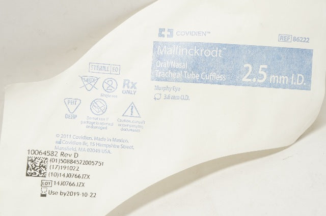 Covidien 86222 Mallinckrodt Oral/Nasal Tracheal Tube Cuffless 2.5ID x 3.6mmOD(x)