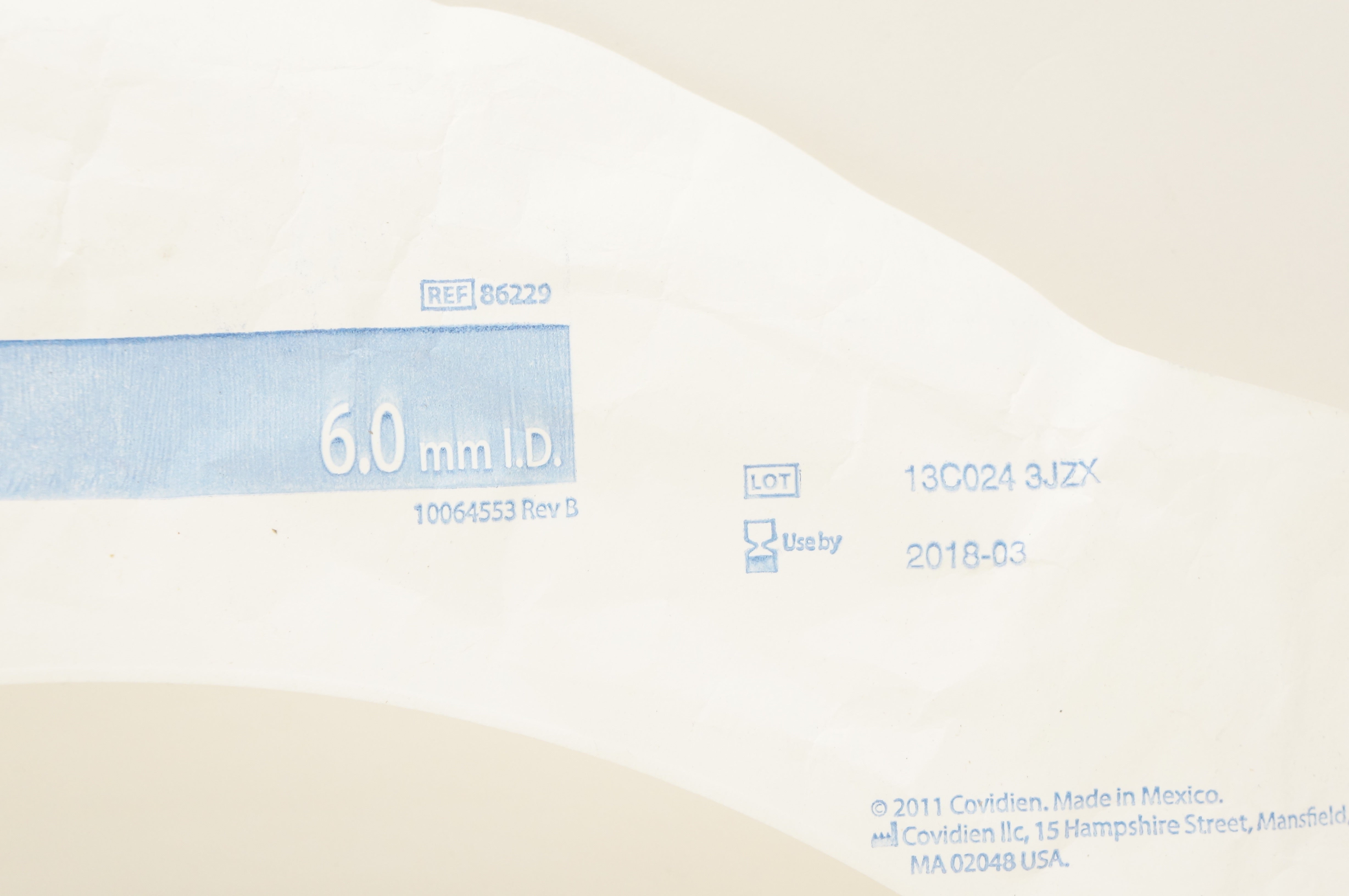Covidien 86229 Mallinckrodt Oral/Nasal Tracheal Cuffless Murphy Eye 6.0mm ID x 8.2mm OD