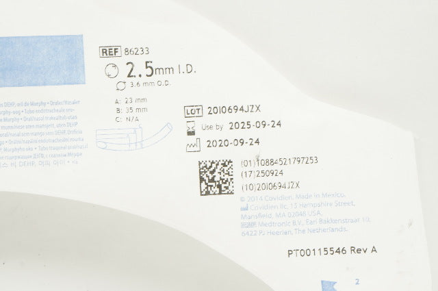 Covidien 86233 Shiley Oral/Nasal Tracheal Tube Cuffless 2.5mm I.D. x 3.6mm O.D.