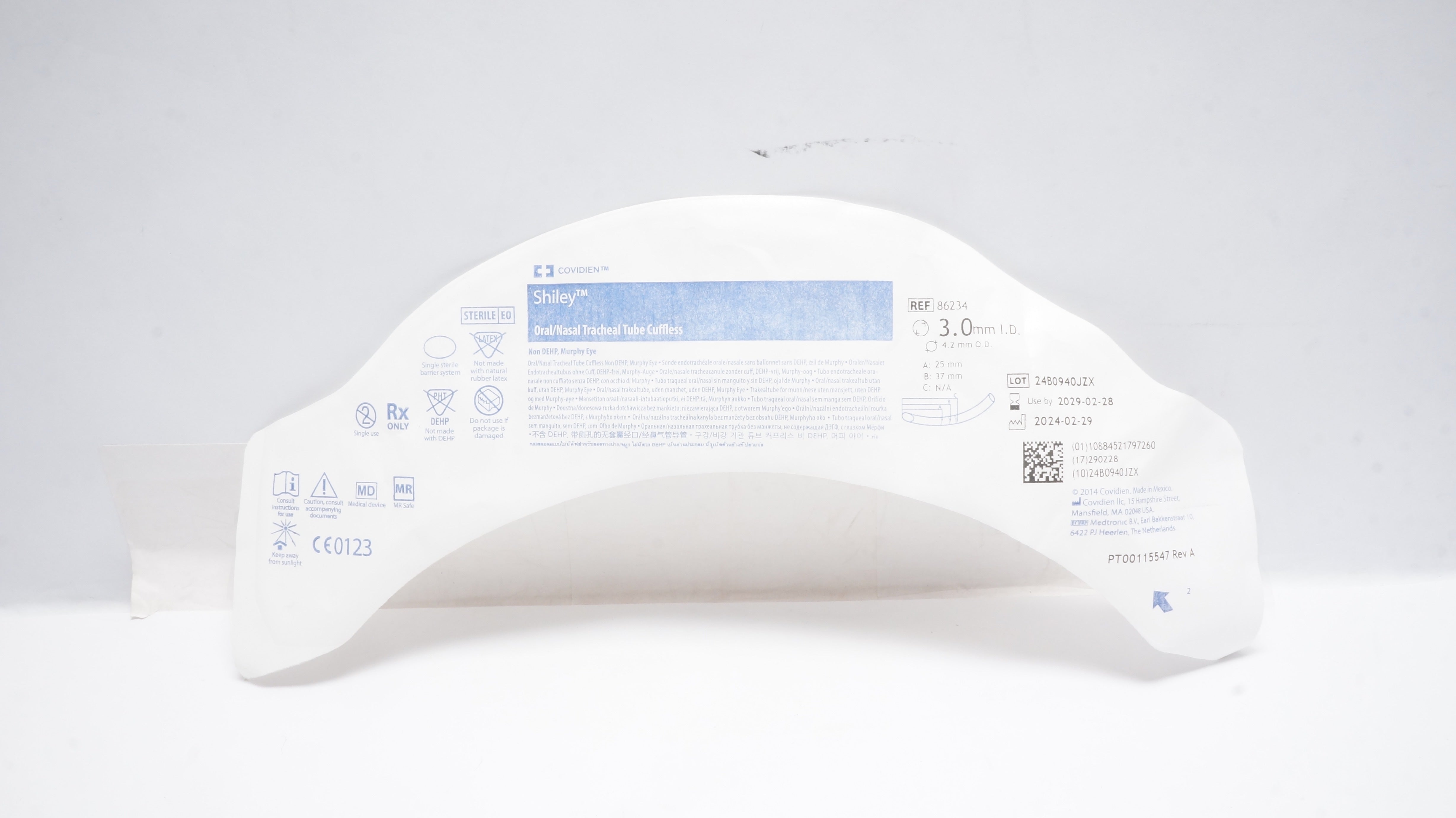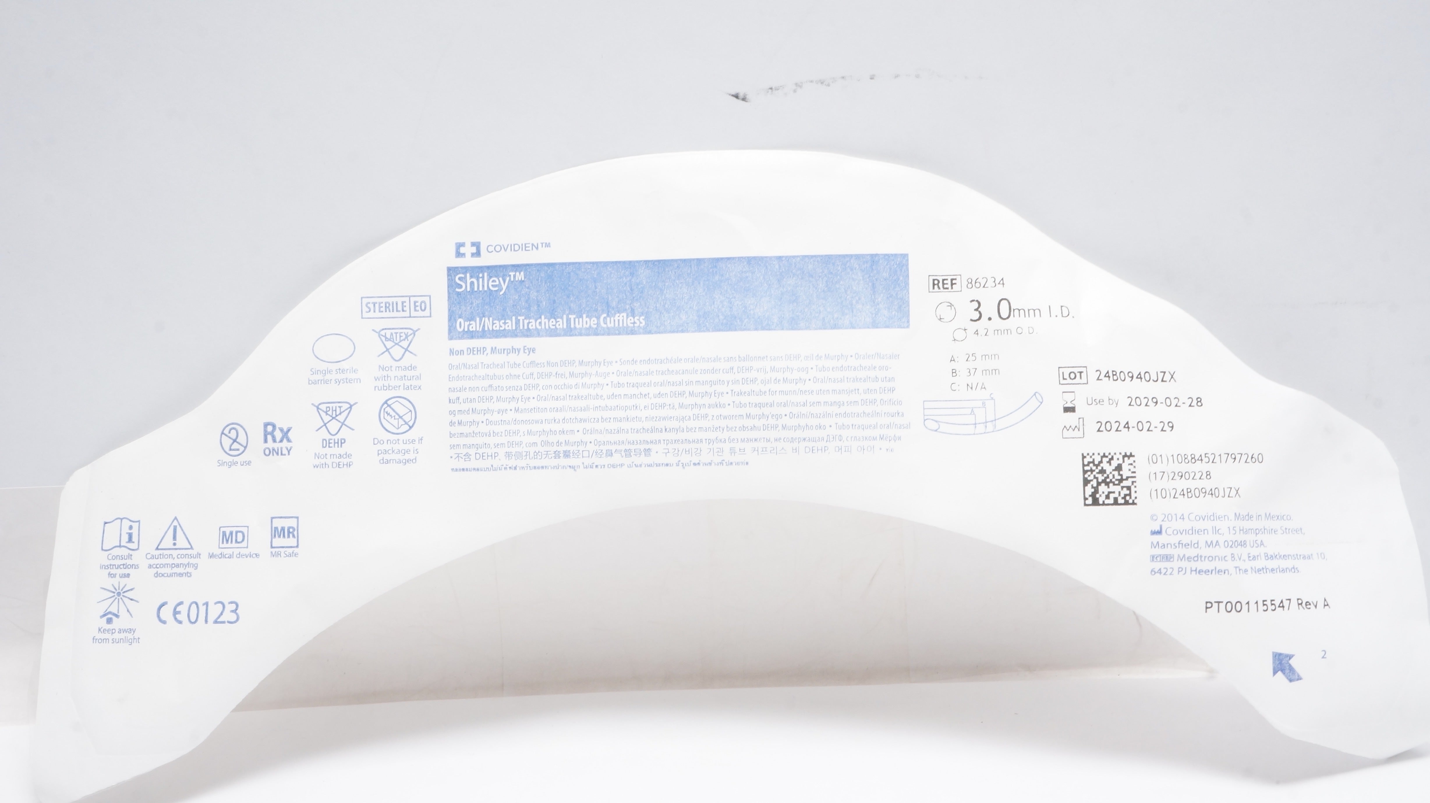 - Covidien 86234 Shiley Oral/Nasal Tracheal Tube Cuffless 3.0mm I.D. x 4.2mm O.D.