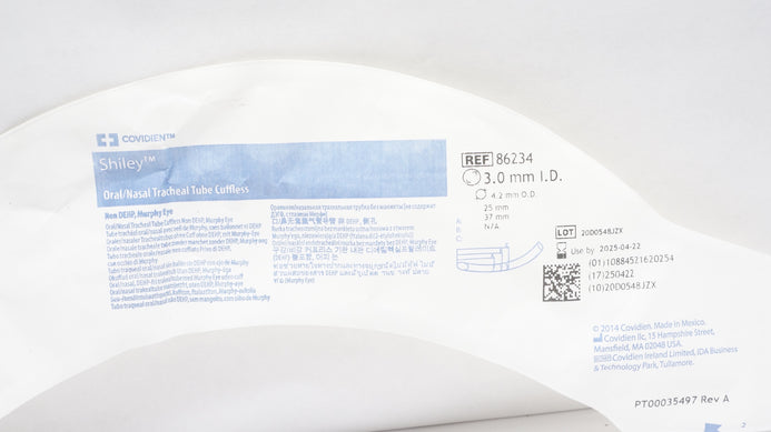 - Covidien 86234 Shiley Oral/Nasal Tracheal Tube Cuffless 3.0mm I.D.x4.2mm O.D.(x)