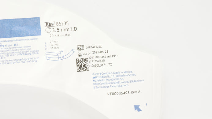 - Covidien 86235 Shiley Oral/Nasal Tracheal Tube Cuffless 3.5mm ID x 4.9mm OD (x)