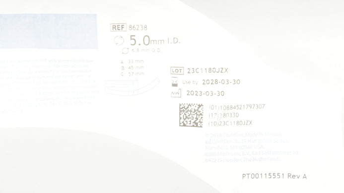 Covidien 86238 Shiley Oral/Nasal Tracheal Tube Cuffless 5.0mm ID x 6.8mm OD