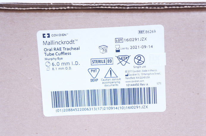 - Covidien 86269 Mallinckrodt Oral RAE Tracheal Tube 6.0mm x 8.1mm - Box of 10
