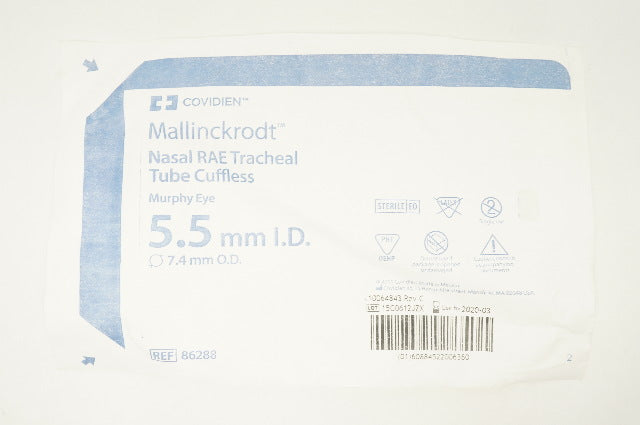 - Covidien 86288 Mallinckrodt Nasal RAE Tracheal Tube Cuffless 5.5 x 7.4mm (x)