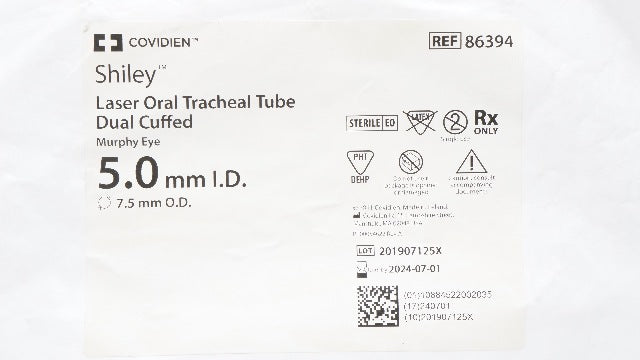 Covidien 86394 Shiley Laser Oral Tracheal Tube Dual Cuffed 5.0 ID x 7.5mm OD(x)