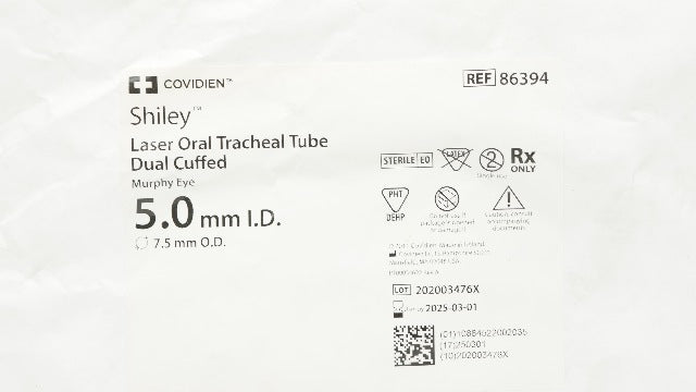 Covidien 86394 Shiley Laser Oral Tracheal Tube Dual Cuffed 5.0mm ID x 7.5mm OD