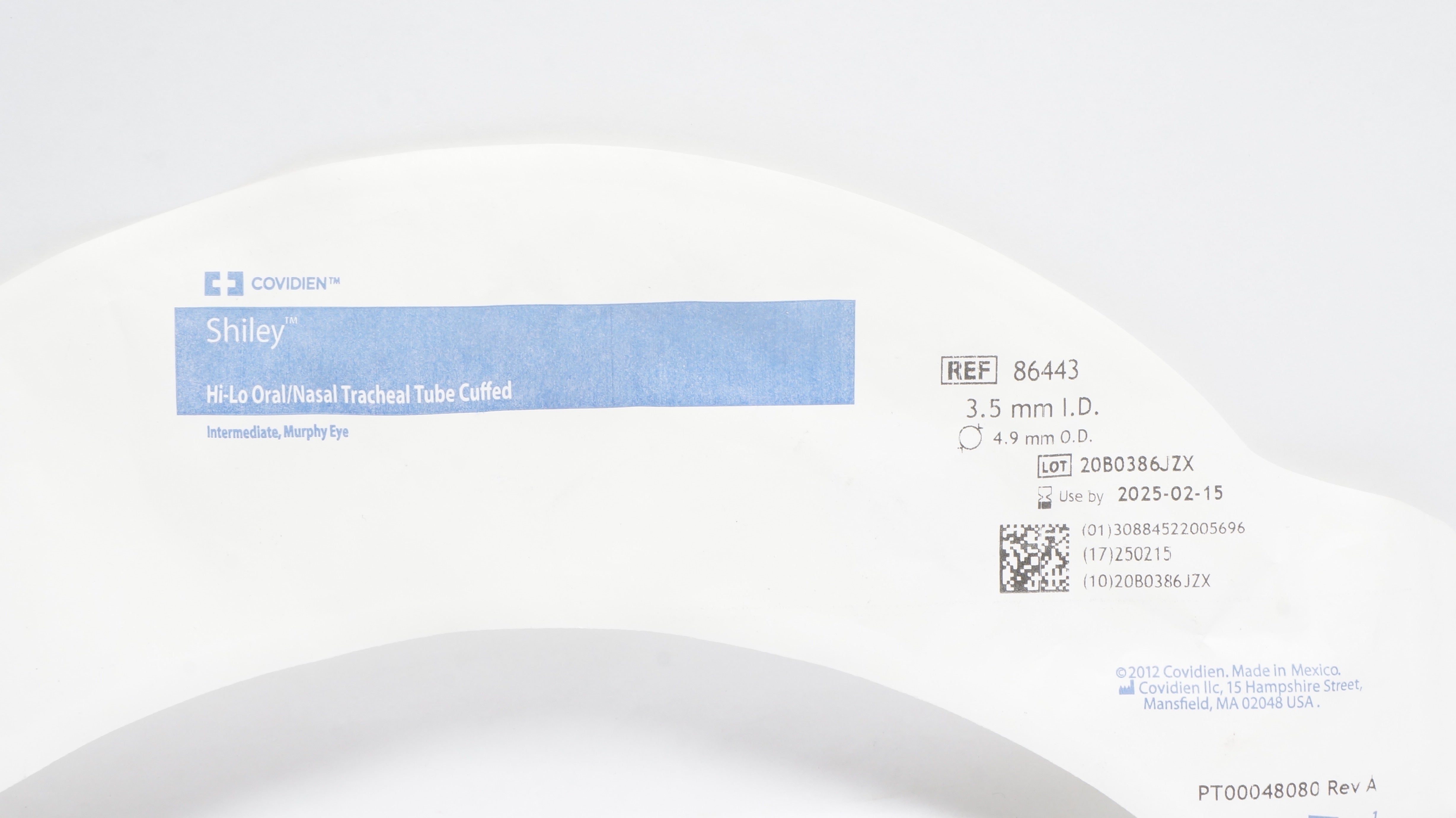 Covidien 86443 Shiley Hi-Lo Oral/Nasal Tracheal Tube Cuffed 3.5mm ID x 4.9mm OD